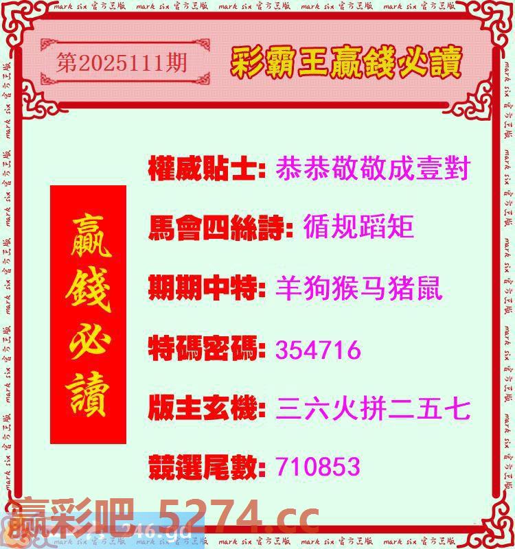 111期:彩霸王赢钱必读